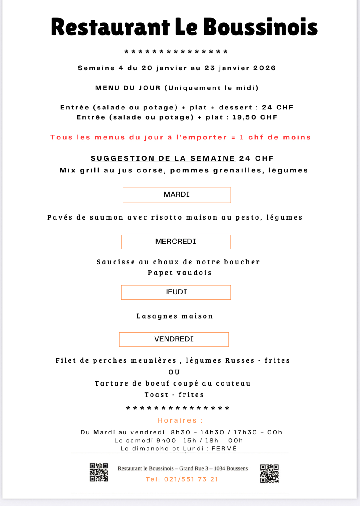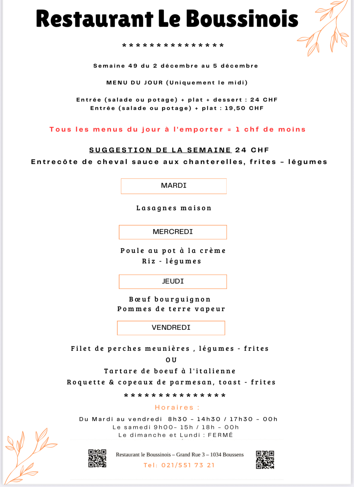 Recevez le menuRecevez notre menu du jour chaque semaine. |