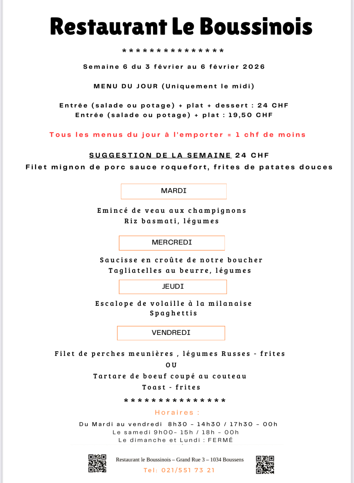 Recevez notre menu du jour chaque semaine.